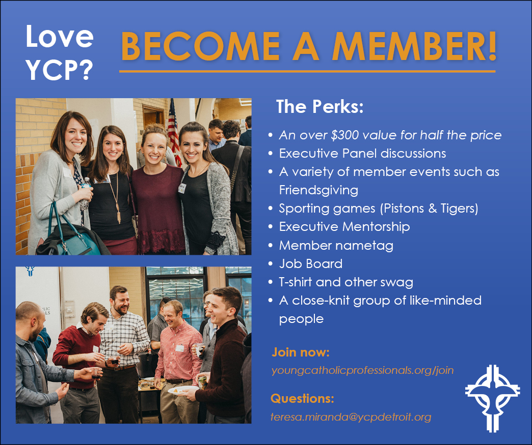 I currently volunteer as Assistant Director of Marketing at Young Catholic Professionals Detroit, a local networking group. Below are examples of my work with YCP.